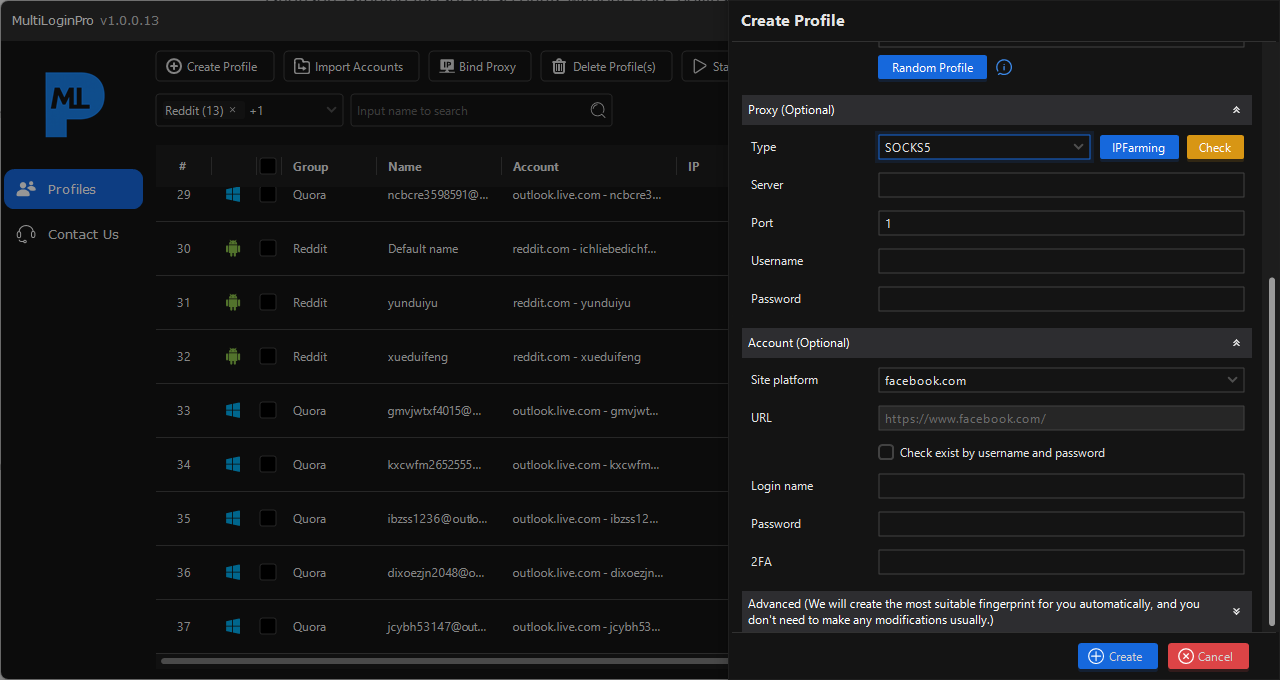 Claro. Si quieres más anonimato, primero activa tu VPN, después ejecuta MultiLoginPro con proxy local.