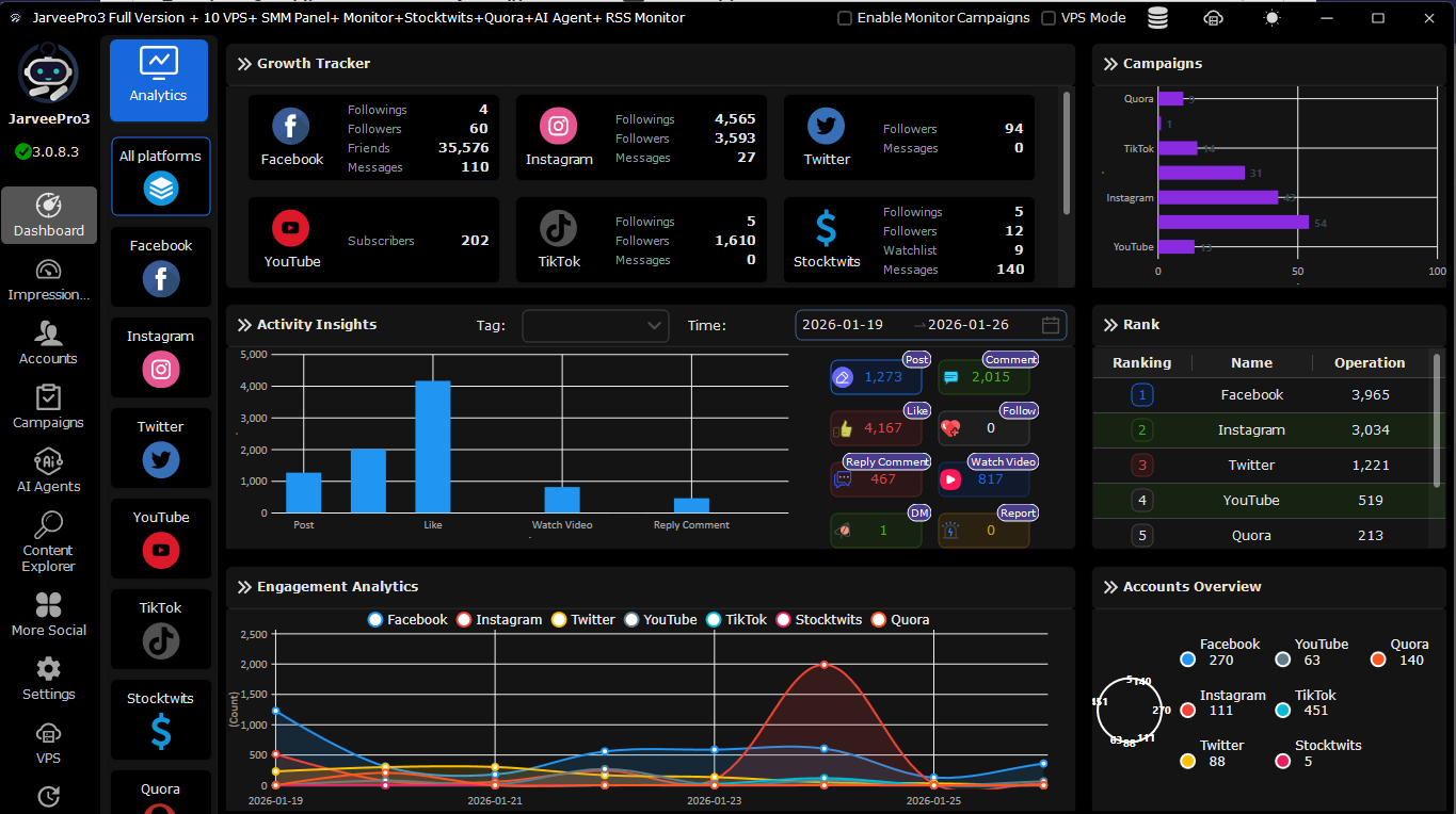 JarveePro lets marketers automate engagement (likes, comments, follows) while simulating human‑like patterns that align with platform quality signals. Its free version is a fantastic entry point for those scaling without upfront investment, especially for multi‑platform campaigns. Because algorithms respond poorly to robotic posting, JarveePro’s behavior‑based automation helps maintain reach without drawing penalties.